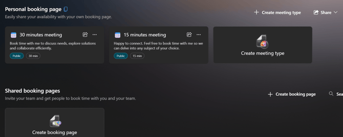 This will allow you to create a 15 or 30-minute appointment linked to your personal calendar (or generate a booking link that connects to multiple team calendars).